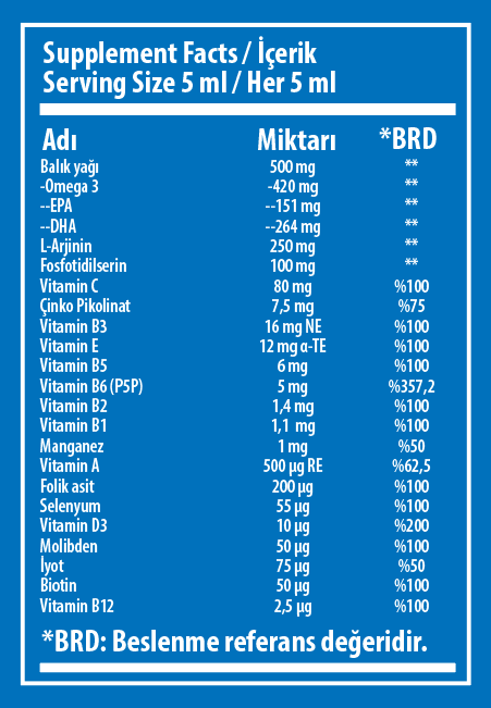 Kullanım Önerisi: 4-10 Yaş Arası Çocuklar için Günde 1 Ölçek (5 ml), 11 Yaş Üzeri ve Yetişkinler için; Sabah-Akşam 1’er Ölçek (10 ml) tüketilmesi tavsiye edilmektedir.
